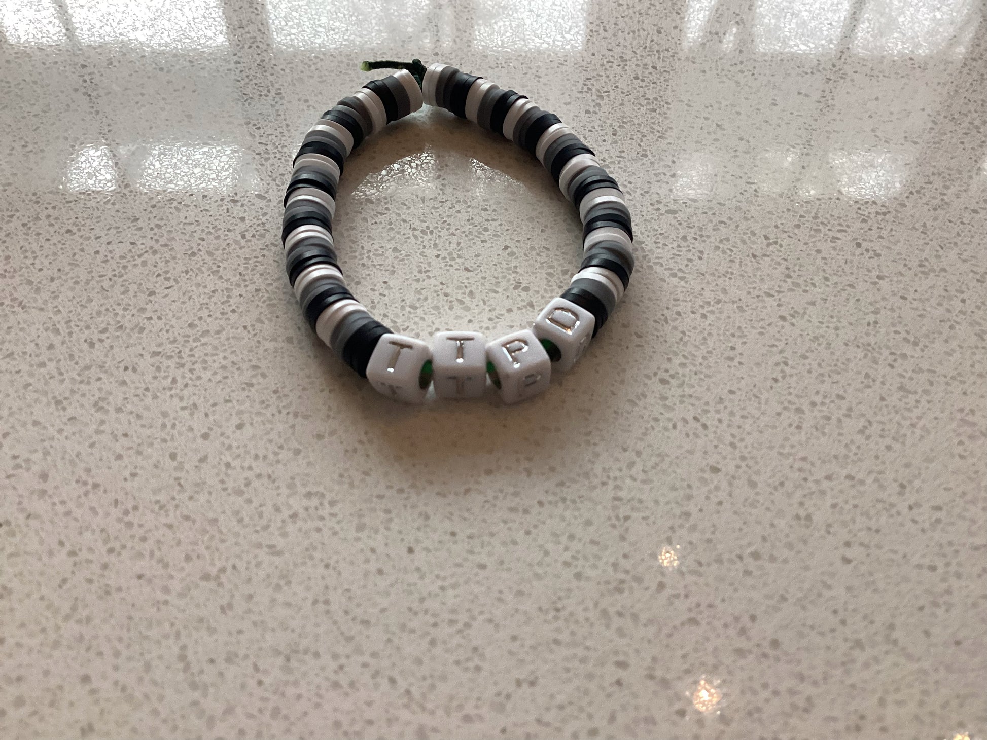 Introducing TTPD (The Tortured Poets Department), inspired by Taylor Swift's iconic style. These white beads showcase silver (or black) letters, adding a touch of elegance to any outfit. Show off your love for TTPD with this stylish bracelet. Crafted with quality materials, it's the perfect addition to your accessory collection.
